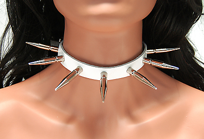 Lederhalsband / 4,5 cm Killernieten (Weiß)