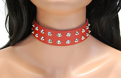 Lederhalsband / 2-reihig Spitznieten (Rot)