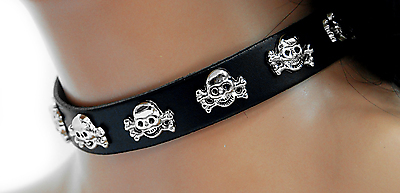 Lederhalsband - Totenköpfe, Spitznieten und Ketten