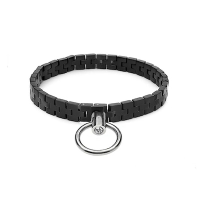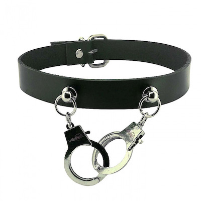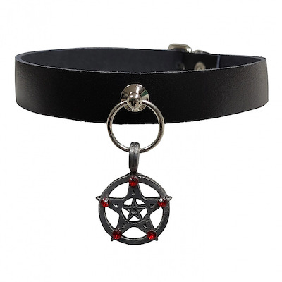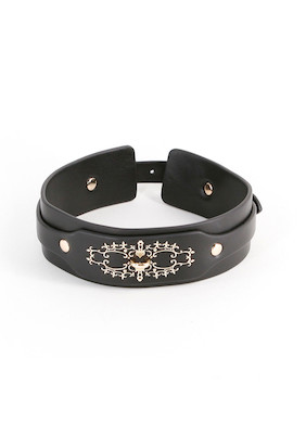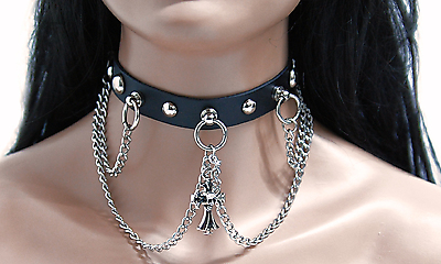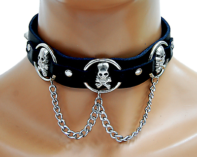 Lederhalsband - Totenkopf, Ösen und Ketten