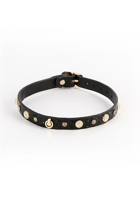 Lederhalsband / 2-reihig 3,7 cm Conenieten
