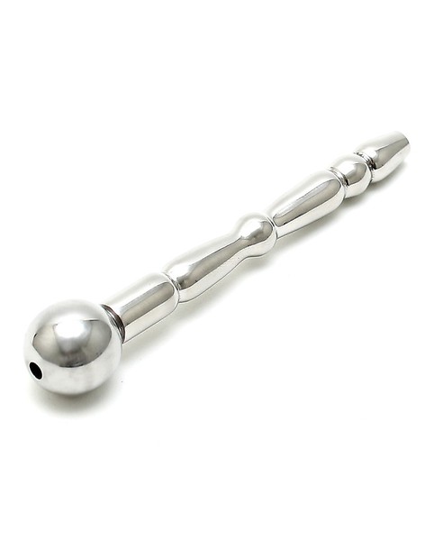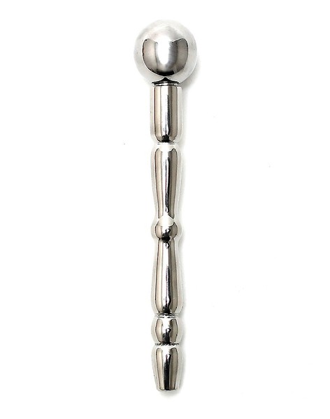Hohler Harnröhren-Stab aus Edelstahl. 92mm lang und 8mm im Durchmesser. Die obere Kugel bemisst Ø16mm