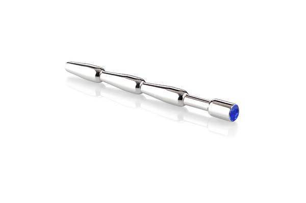 Gerippte Harnröhrensonde mit einem schönen blauen Plastikedelstein, die richtig gut aussieht, wenn sie bis zum Anschlag im Schwanz eines Mannes steckt!