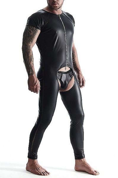 Ganzkörper-Overall / 2-seitiger silberner Reißverschluss mit dekorativen RFP-Logo-Anhängern / an den Schultern, vorne und hinten und an den Seiten entlang des ganzen Körpers befindet sich ein dekoratives schwarzes Mesh / im Hüftbereich vorne und hinten gibt es freien Zugang zum Körper / betont schön breite Schultern und schmale Taille.