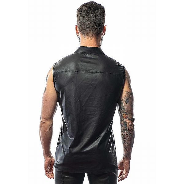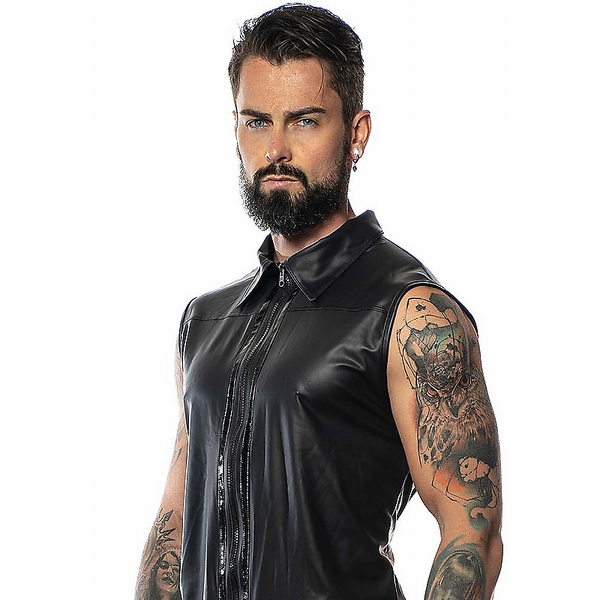 Heiße Mattlook-Weste für Ihn mit Kragen und Reißverschluss vorn. Die schwarz-glänzenden Lack-Streifen sind ein echter Hingucker!