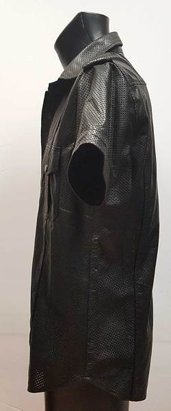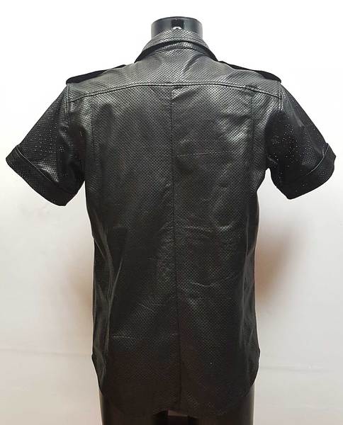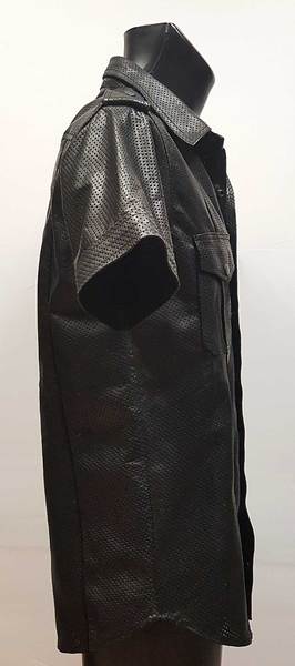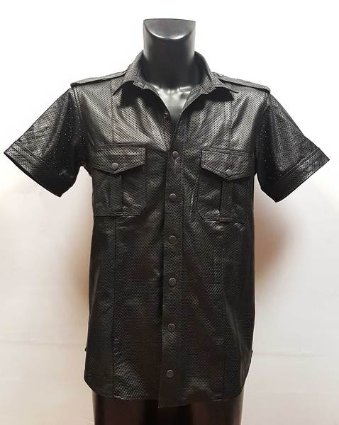 Formschönes Uniform-Hemd aus weichem, gelochten Nappaleder vom Rind mit Brusttaschen, Schulterklappen. und Druckknöpfen.