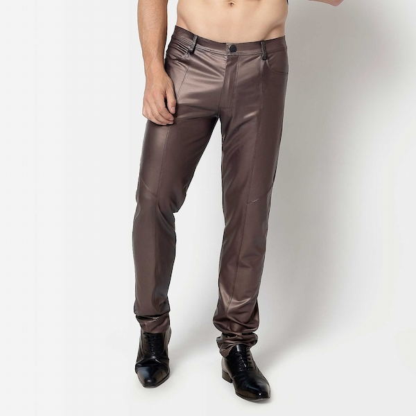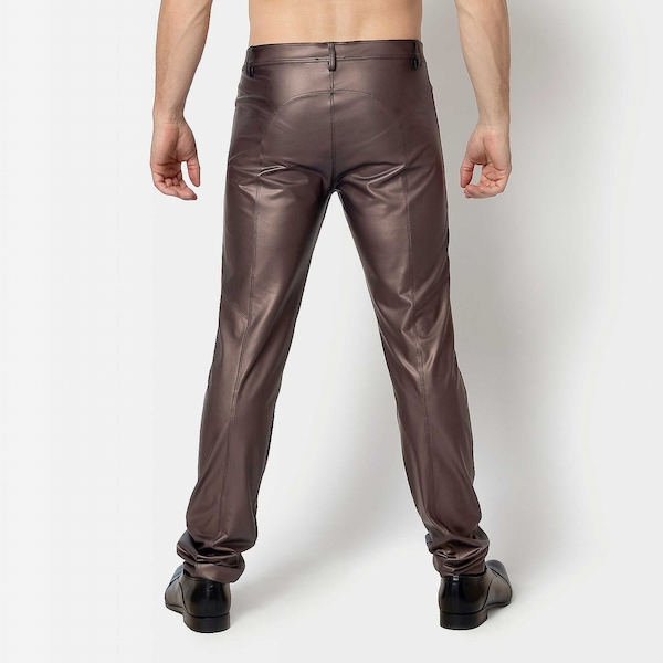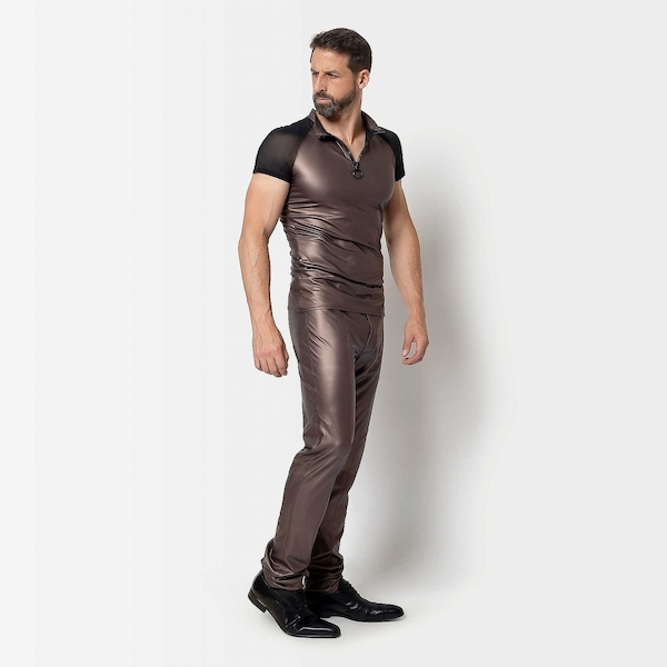 Bronzefarbene Herrenhose aus leichtem Stoff mit Taschen vorn und hinten. Mit Gürtelschlaufen.