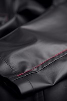 Die roten Ziernähte und der rote Alcantara-Patch sind wunderbar raffinierte Details.