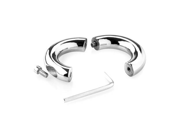 Klappbarer Ø45 mm Hodendehner mit Inbusschlüssel für einfache Handhabung. Maße: Innen-Ø 45 mm, Außen-Ø 75 mm, Materialstärke 15 mm. Gewicht 244 g.