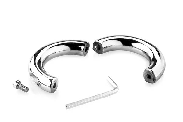Klappbarer Ø50 mm Hodendehner mit Inbusschlüssel für einfache Handhabung. Maße: Innen-Ø 50 mm, Außen-Ø 81 mm, Materialstärke 15 mm. Gewicht 275 g.