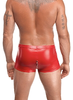 Aus rotem Powerwetlook gefertigt. Kurzer, figurbetonter Schnitt mit langem, silbernem Schrittreißverschluss und elastischem Bund. Weiches Innenfutter, glatte Oberfläche und flexible Passform.