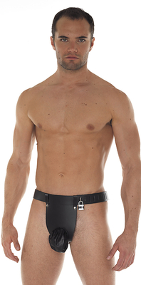 Keuschheitsgürtel Leder schwarz mit Schloß