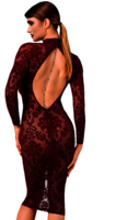Design: Mit langen Ärmeln, einem Stehkragen mit zarten Haken- und Ösenverschlüssen und einem sinnlichen offenen Rücken vereint dieses Kleid Raffinesse mit einem Hauch von Verführung. Die Midilänge verleiht Eleganz und zaubert eine elegante und anmutige Silhouette.