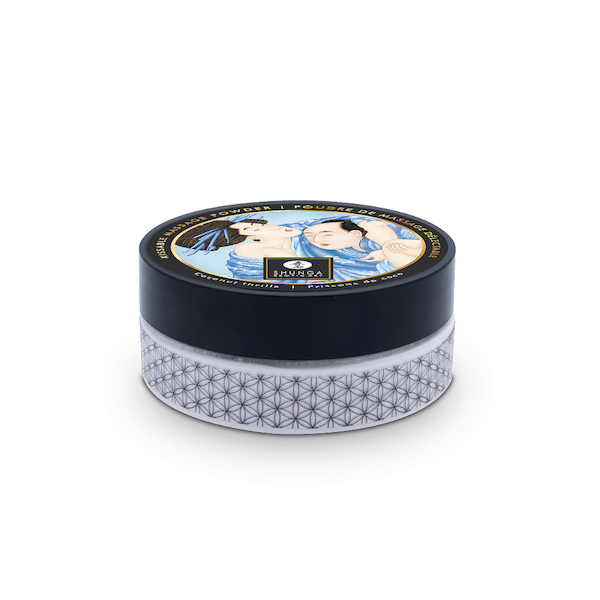 KÜSSBARES MASSAGEPUDER Machen Sie aus Ihrem Liebespartner ein leckeres Festessen, indem Sie seine erogenen Zonen mit diesem aufregend schmeckenden Puder bestreuen. Sie können ebenfalls den Federpinsel benutzen und damit sanft über den Körper des Liebespartners streichen. Es wird Sie am ganzen Körper angenehm durchzucken… Lassen Sie es sich schmecken! Ideal für eine sinnliche Trockenmassage ohne jegliches fettiges Gefühl. Kann als Trocknungspuder uneingeschränkt an allen Körperstellen angewendet werden. Nur zur äußerlichen Anwendung. Kokosnuss