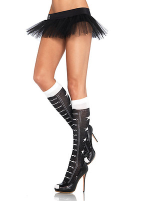 Acrylic Faux Lace Up Athletic Star Knee Highs