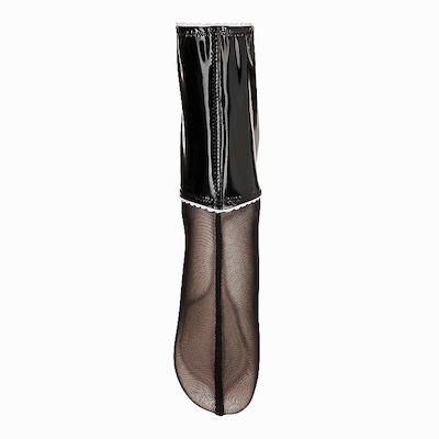 Lack Söckchen mit Nylonfuß und weißen Rüschen