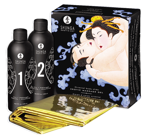 Erotisches Massage-Gel für eine orientalische Körper-an-Körper-Massage. Die Haut wird empfänglich für Streicheleinheiten. Ein außergewöhnliches Abenteuer für die Verliebten..