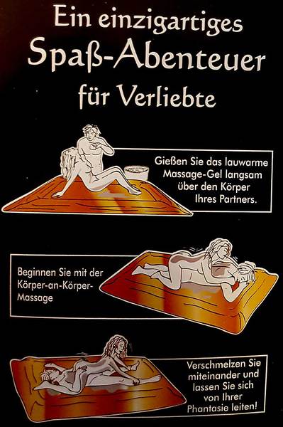 Das Set beinhaltet eine Lösung, die nach dem Mischen mit Leitungswasser ca. 4 Liter warmes und weiches Massage-Gel ergibt. Dem Set liegt eine wasserdichte Folie (160cm x 228cm) bei, die man auf das Bett legt. Danach tragt Ihr großzügig das Gel auf die beiden nackten Körper auf, wodurch ein berauschendes, fast schwebendes Gefühl entsteht.
