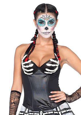 Latex Bony Hands Wet Look Underwire Halter Corset