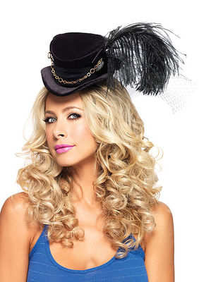 Rose Clip-On Petite Glitter Top Hat With Polka Dot Mesh And Feather