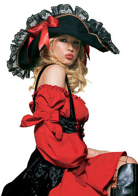 Women's Swashbuckler Hat With Lacetrim And Satin Bow