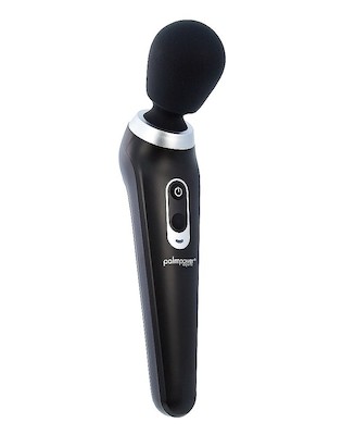 Die Palmpower Nachladen hat einen schwarzen Griff mit vibrierenden fuchsia Silikonkappen und Hals.