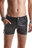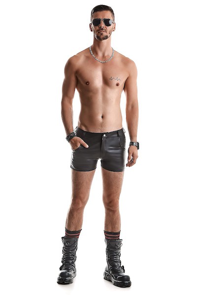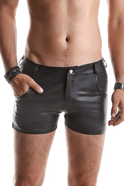 Kurze, sinnliche Shorts. Hergestellt aus dehnbarem Wetoolk-Stoff in Schwarz.