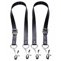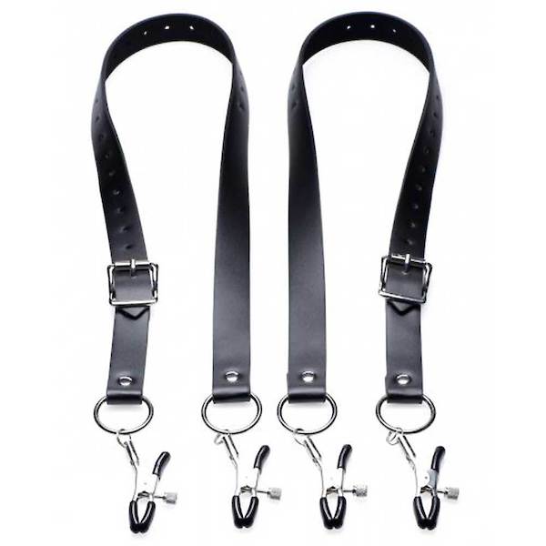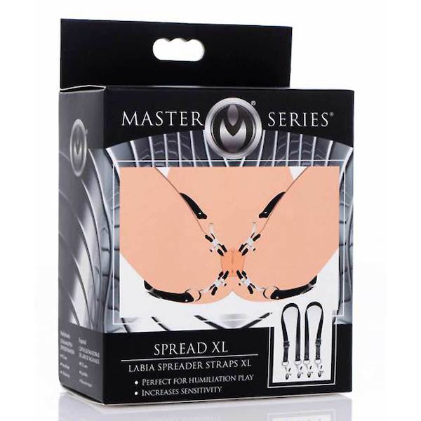 Verstellbare Druckklammern und -gurte, voll verstellbar. Dieser extragroße Schamlippenspreizer wurde entwickelt, um die Vagina Ihres Liebhabers zu öffnen und ihre empfindlichen Teile zu Ihrem Vergnügen zur Schau zu stellen. Die Einstellschrauben an jeder Klemme ermöglichen eine einfache Kontrolle des Klemmdrucks, während die Riemen selbst an die meisten Bein- und Taillengrößen angepasst werden können.