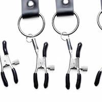 Verbreiten Sie Ihren Liebhaber schön und weit in Komfort! Die Riemen sind samtgefüttert und angenehm auf der Haut, während die Gummispitzen an jeder Klemme Beschwerden verhindern, wenn sie auf die empfindlichen Stellen Ihres Partners drücken.