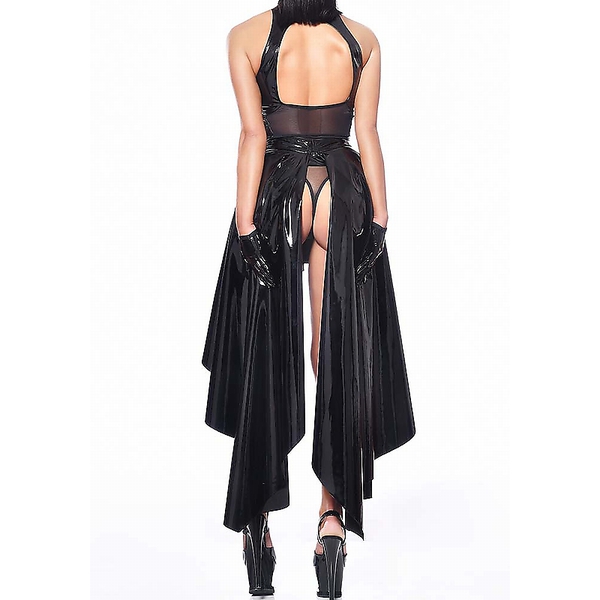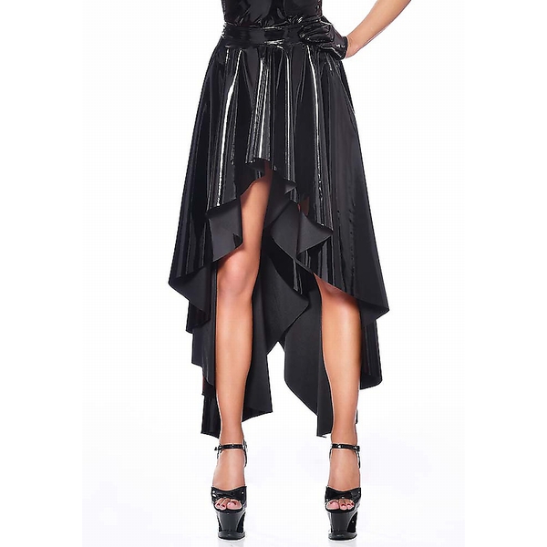 Klassischer Rock der O aus schwarzem Lack mit den obligatorischen Schlitzen vorn und hinten.