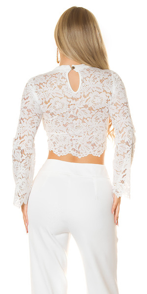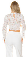 Spitzentop mit eingearbeiteten Cups und langen Ärmeln, weiß. Einheitsgröße ca. S - L.