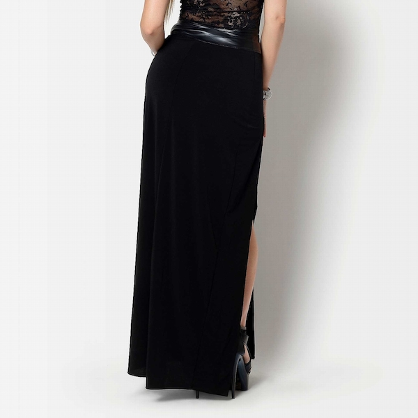 Herrlicher langer Stoffrock mit Beinschlitz und glänzendem Bund.