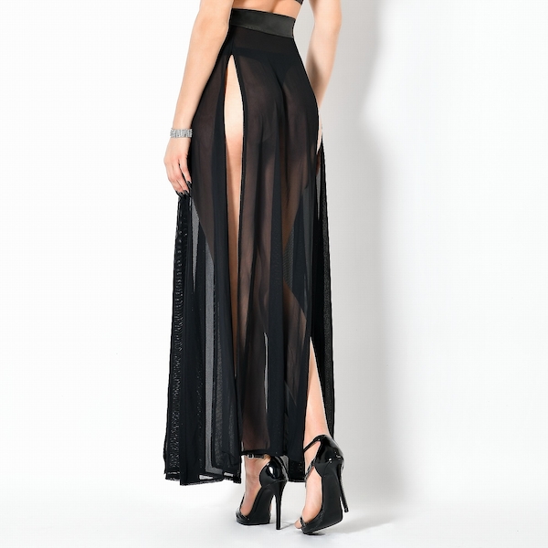 Langer durchsichtiger Rock mit zwei langen Beinschlitzen und Bund.