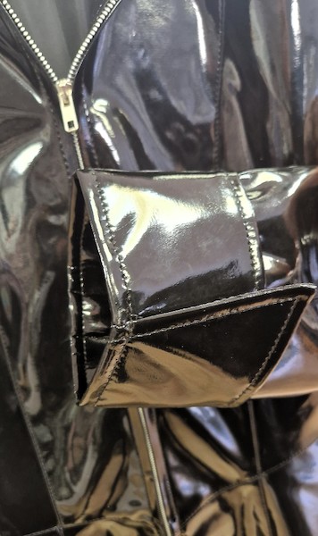 Dieser Lack Mantel im 'Matrix' Stil ist aus sehr hochwertigem, dicken Lack gefertigt. Er hat ein durchgehendes Futter und einen YKK Reißverschluss aus Metall. Bewusst wurde auf Taschen verzichtet, da er sehr körperbetont und tailliert sitzt.