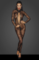 Dieser sexy lange Tüll-Overall ist mit Flockstickerei und einem langen 3-Wege-Reißverschluss verziert, der vom Kragen bis zum Schritt reicht. Dieser schiere Look zeigt kokette Weiblichkeit.