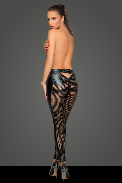 Wow! Diese Leggings ist der Hingucker! Aus elastischem Mattlook, der mittels Lasertechnik zum Gitter geschnitten wurde. Man beachte die hocherotische Rückansicht!