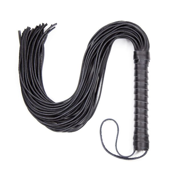 PVC Peitsche mit langen Striemen und breitem Griff.