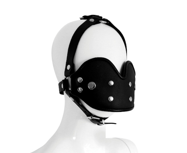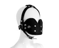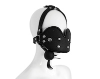 Maske aus Leder mit integriertem (abknöpfbarem) Mundknebel. Kopfmaske mehrfach verstellbar, Knebel Ø 40 mm.
