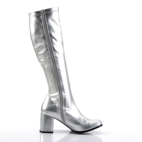 Kniehoher Stiefel mit Blockabsatz GOGO-300 silber