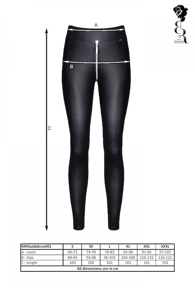 Glatte, dehnfähige Hose mit 2-Wege-Reißverschluss durch den Schritt.