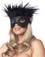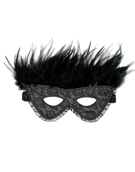 Schwarze Maske im Satin-Look mit Luxus-Federn.