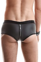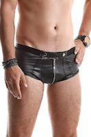 Schöner Herrenslip aus Mattlook und Lederoptik mit Zwei-Wege-Reißverschluss durch den Schritt.