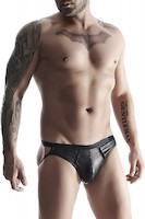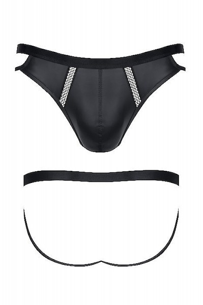 Jockstrap-Slip / dekorative, vertikale Einsätze aus schwarzem, elastischem Netzstoff vorne / elastisches Band auf der Rückseite hebt das Gesäß schön an und verleiht ihm einen verführerischen Look / elastisches Material / angenehmes breites elastisches Band um die Taille / BigBoss-Tasche / verstärkte Nähte