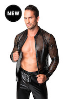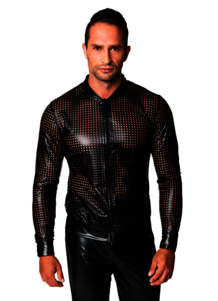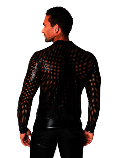 Auffällige Bomberjacke für alle, die gerne ein mutiges Statement abgeben. Diese einzigartige Jacke verfügt über ein auffälliges perforiertes Muster, das jedem Outfit einen modernen und kantigen Twist verleiht, perfekt für perverse Events, Swingerpartys oder alle, die auffallen wollen.