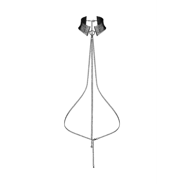 Lassen Sie Ihrer Fantasie freien Lauf und geben Sie sich dem Vergnügen hin! Einfache Aufgabe mit diesem verstellbaren Metallic-Choker. Seine coolen Metallketten, die den Oberkörper und um Ihre Taille drapieren, betonen Ihre Kurven. Ein einfach zu tragendes Halsband für jeden Anlass und ein anregendes Schlafzimmer-Accessoire für sanfte Bondage-Spiele. Wagen Sie es? ContentMesh-Kragen mit Kettengürtel.