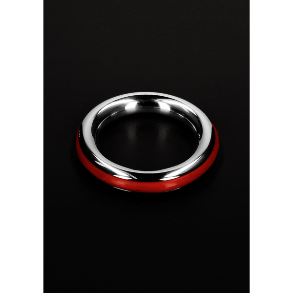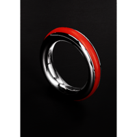 Metall Penis-Hodenring mit rotem Silikon 50 mm
