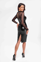 Pencildress aus elastischem Mattlook und langen transparenten Tüllärmeln. Reißverschluss und Gehschlitz hinten.