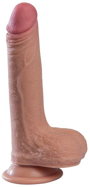 Der extrem gefühlsechte Dildo mit seiner ausgeprägten Eichel, texturierten Hoden und geädertem Schaft sorgt für ein besonders realistisches Gefühl während des Liebesspiels. Ein starker Saugfuß sorgt für gute Haftbarkeit, auch auf glatten Flächen. Material: phthalatfreies Silikon, sehr weiche Oberfläche mit hartem Kern (wodurch der Dildo dem Gefühl eines echten Penis sehr nahe kommt), geruchsneutral, blasenfrei, einfach zu reinigen, hygienisch und wasserdicht. Einführbare Länge: ca. 13,00 cm, Ø ca. max. 3,50 cm Tipp: Für ein angenehmeres Einführen verwenden Sie ein wasserbasierendes Gleitmittel.