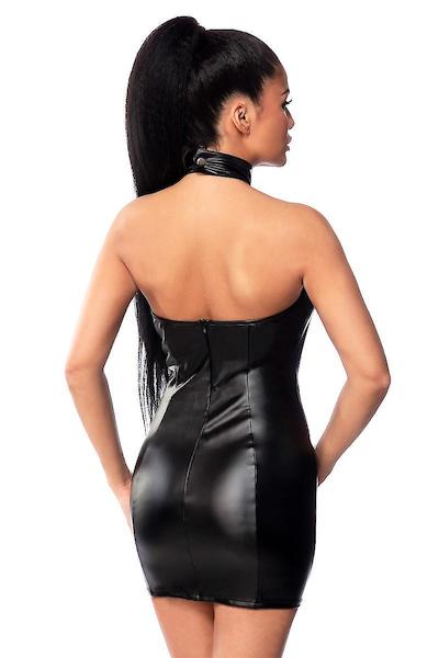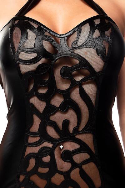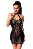 partiell transparentes Minikleid mit aufgenähtem, floralem Muster Kragen mit Knopfverschluss Reißverschluss im Rückteil aus elastischem Material