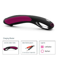 Unser Chester besteht aus 100% medizinischem Platinsilikon mit einem eleganten, nickelfrei verchromten Griff; er ist damit nicht nur herrlich flexibel und absolut hygienisch, sondern hat auch eine samtig weiche Oberfläche, die sich eng an die Haut anschmiegt.